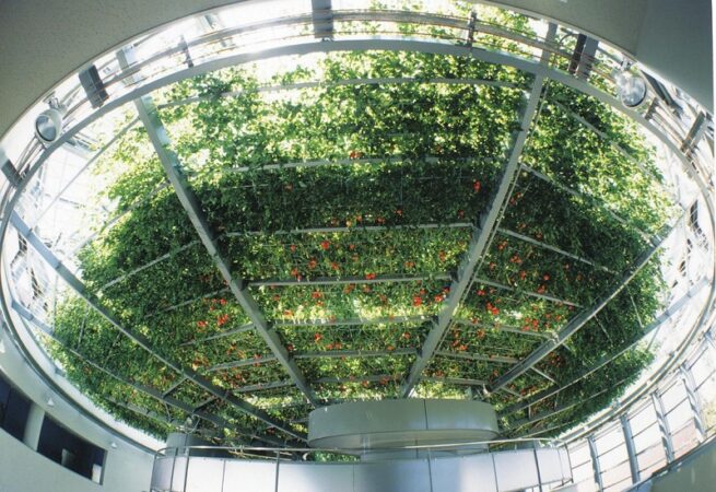 In the Tomato Hall at the Human Resource Development Institute, thousands of plump, red tomatoes grow on only a few tomato plants overlooking visitors. Each tomato “tree” grows stalks stretching over 10 meters.